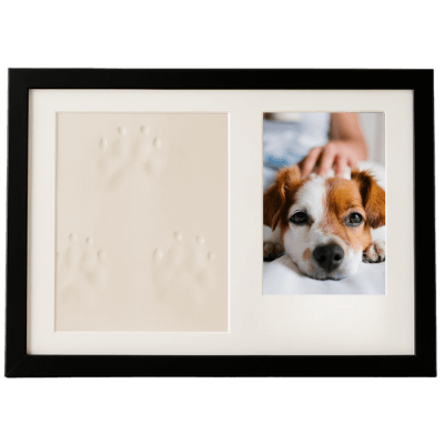 Ce cadre commémoratif pour chien est une façon pleine de douceur de préserver la mémoire de votre compagnon. Avec ses emplacements photo et son espace pour empreinte en argile, il vous permet d’exposer votre plus belle photo à côté d’une empreinte de patte unique, symbole de l’amour partagé.