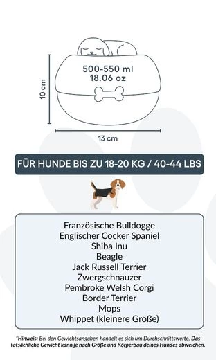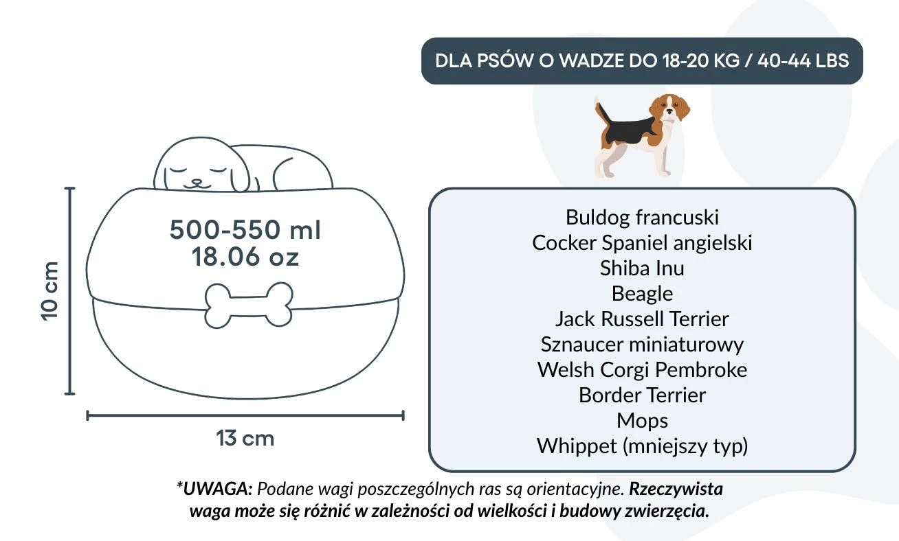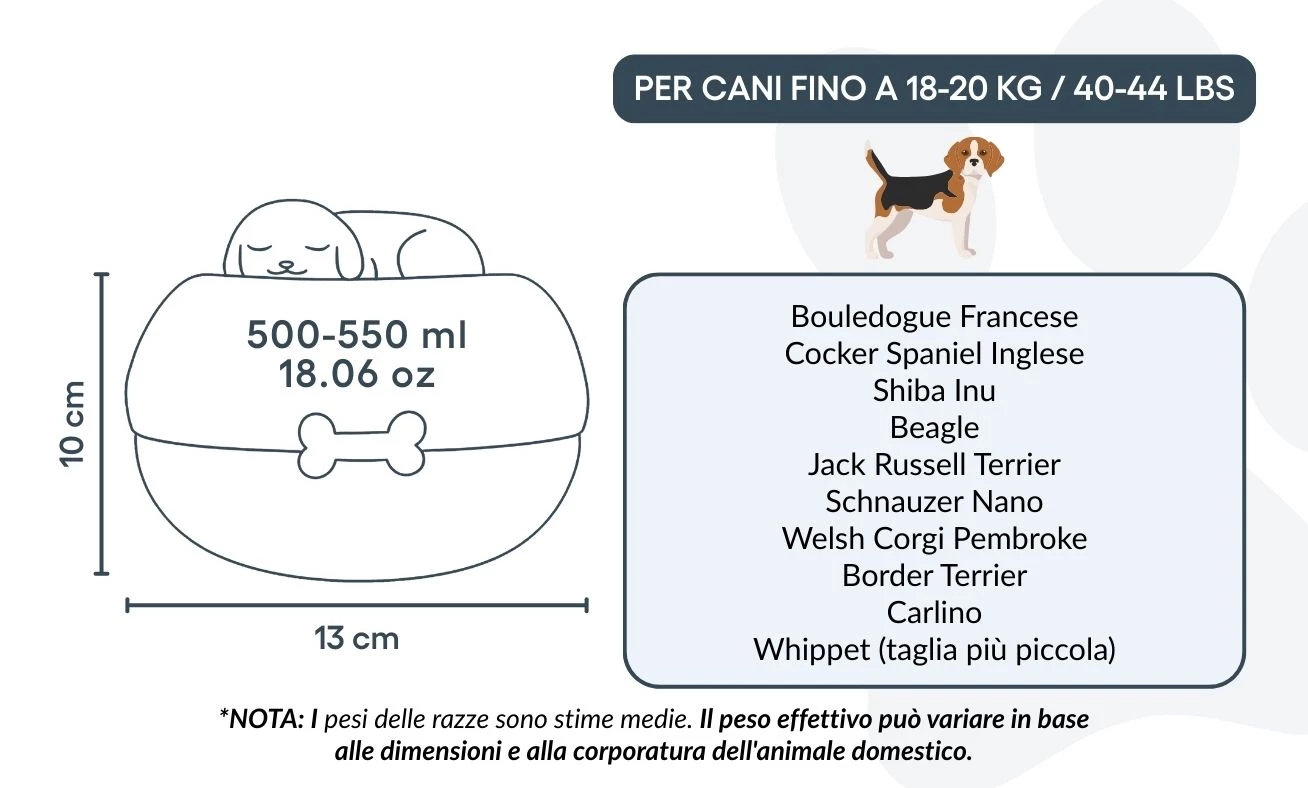 Size / Urn Capacity: 13 (W) x 13 (L) x 10 cm (H) / 283 g | ~500–550 ml / 18.06 oz | for dogs up to 18–20 kg / 40–44 lbs