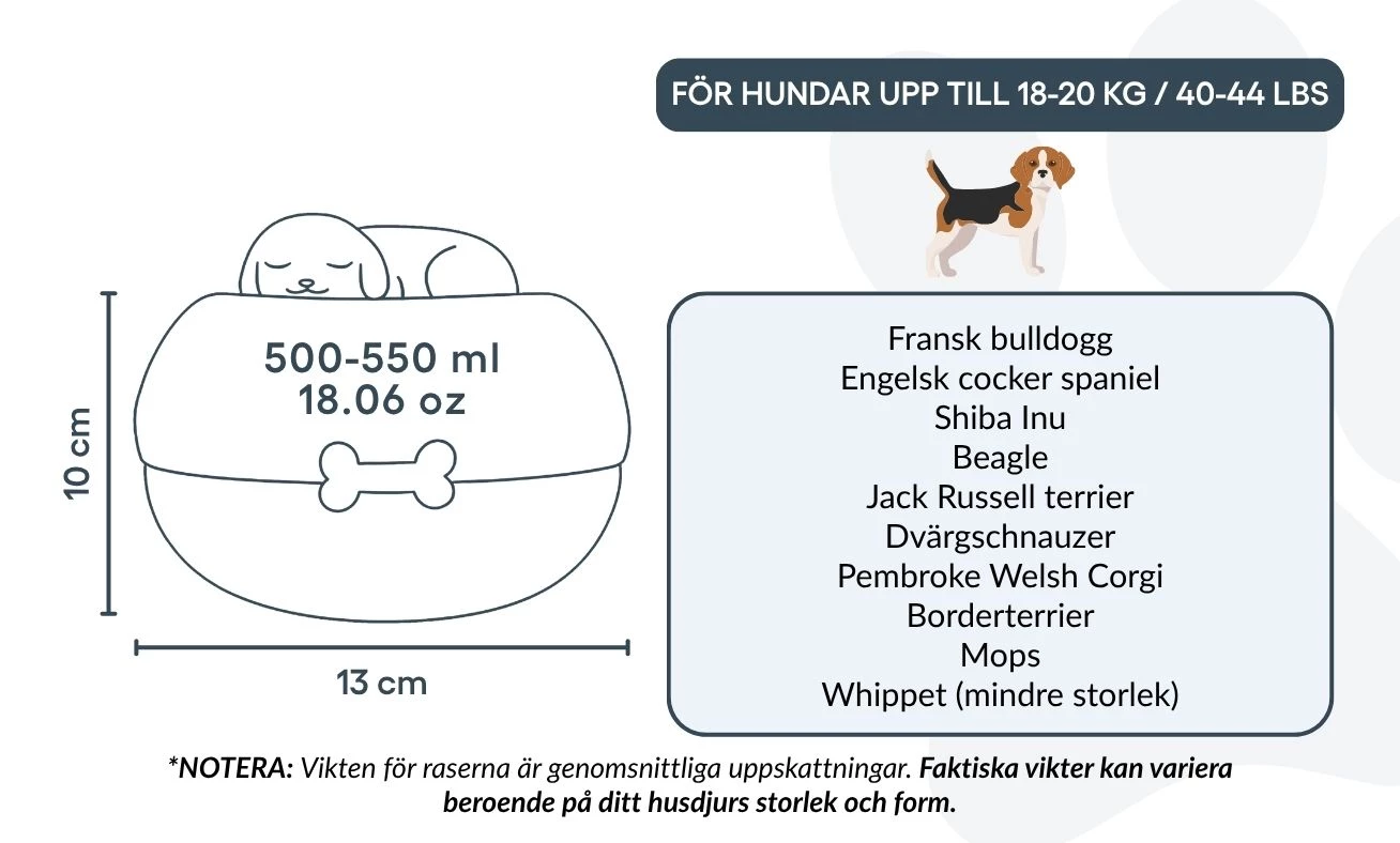 Size / Urn Capacity: 13 (W) x 13 (L) x 10 cm (H) / 283 g | ~500–550 ml / 18.06 oz | for dogs up to 18–20 kg / 40–44 lbs