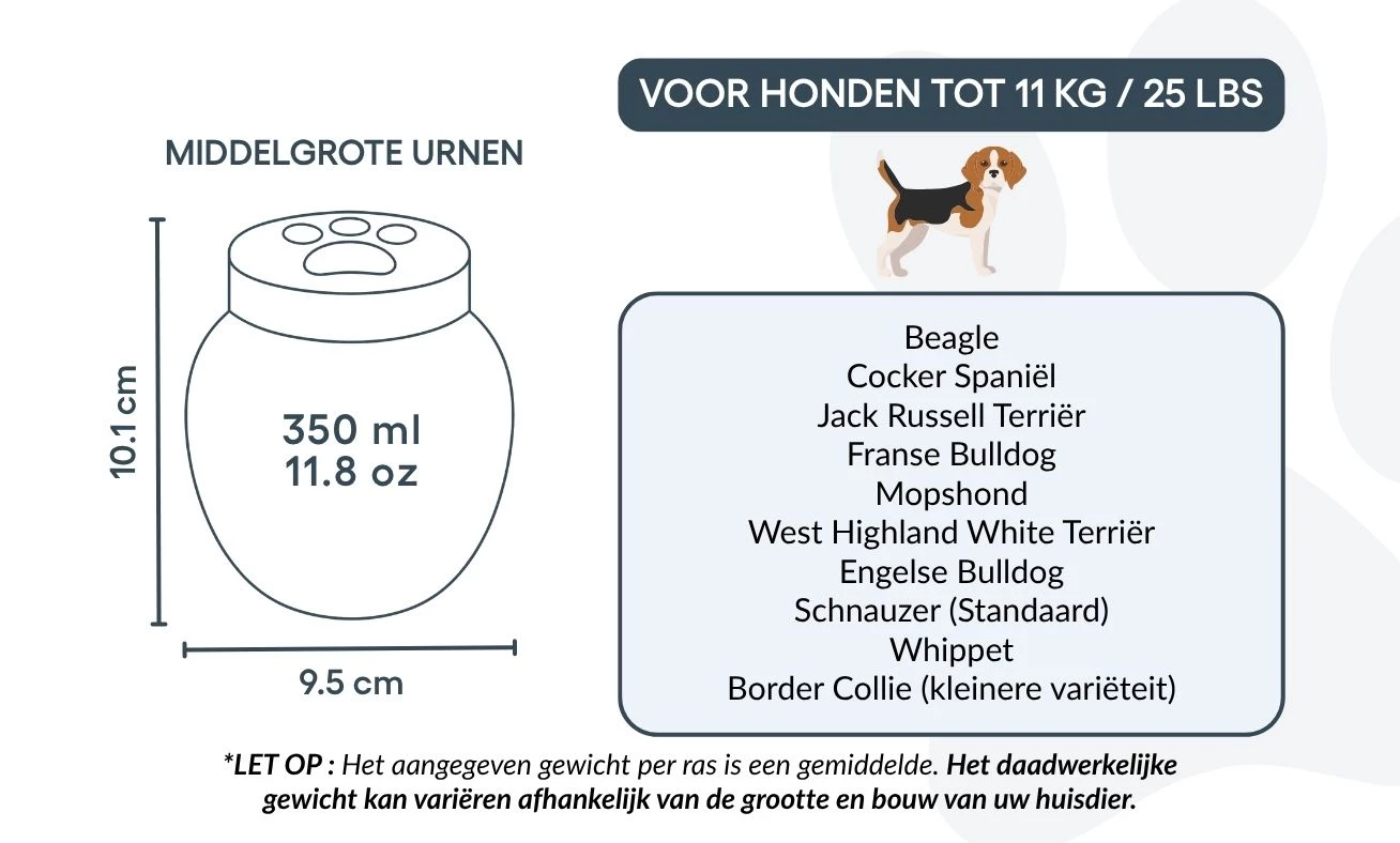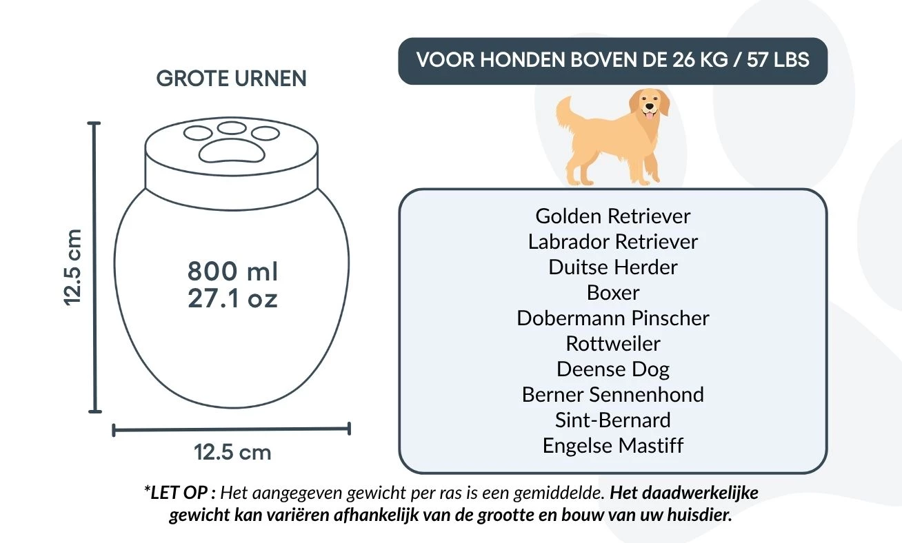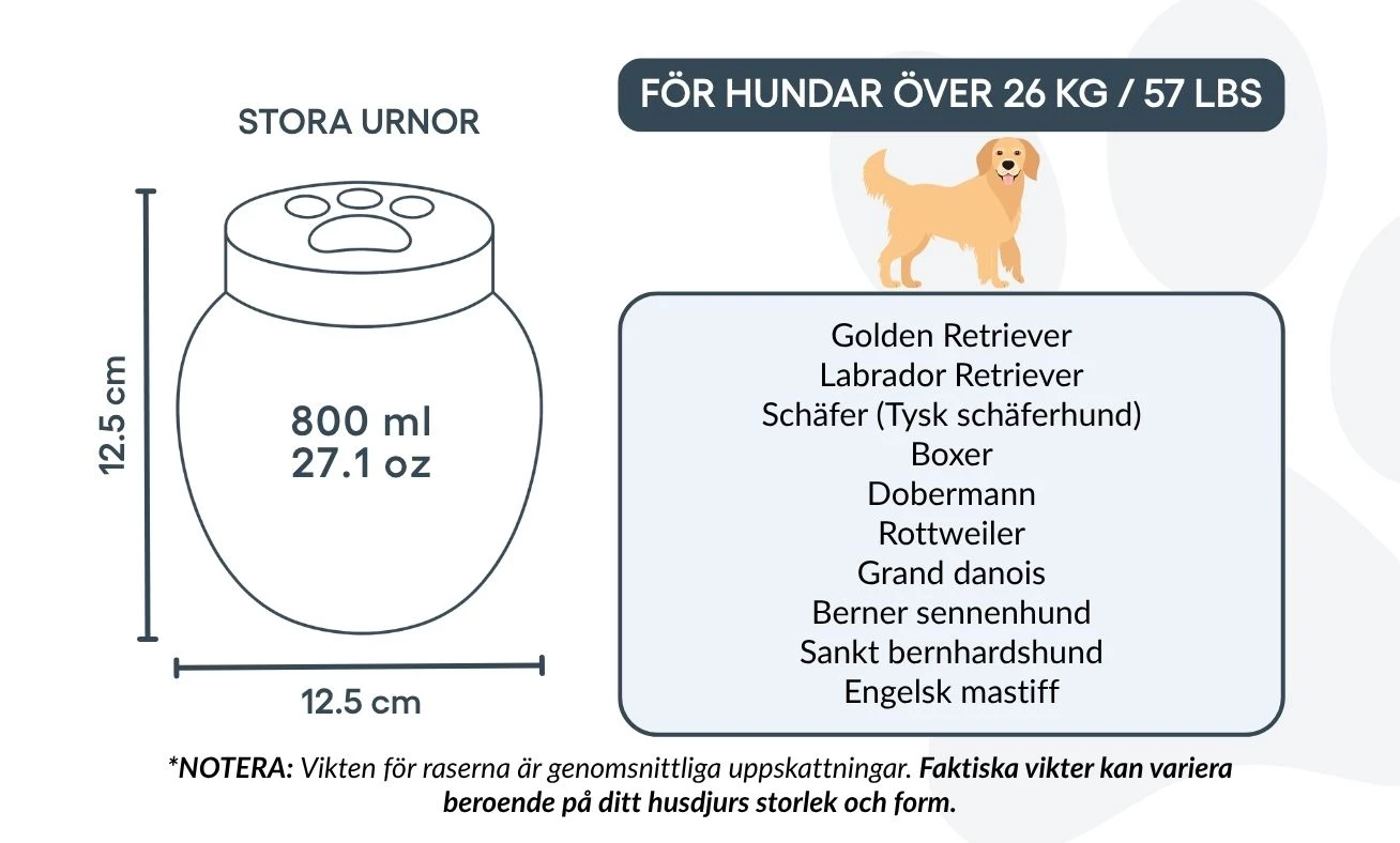 Each dog urn can be engraved with your pet’s name and life dates, creating a deeply personal memorial. Choose from three sizes based on your dog’s weight, ensuring the perfect fit for everything from keepsake use to full pet cremation. Whether you prefer to personalise it for display or keep it tucked away, this cremation urn offers the comfort of a lasting tribute.