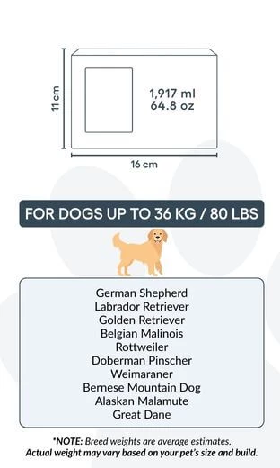 Size / Urn Capacity: 16 cm (W) × 11 cm (H) × 11 cm (L) | 1,027 ml / 34.7 oz / 60 cubic inches | For pets up to approx. 27 kg / 60 lbs