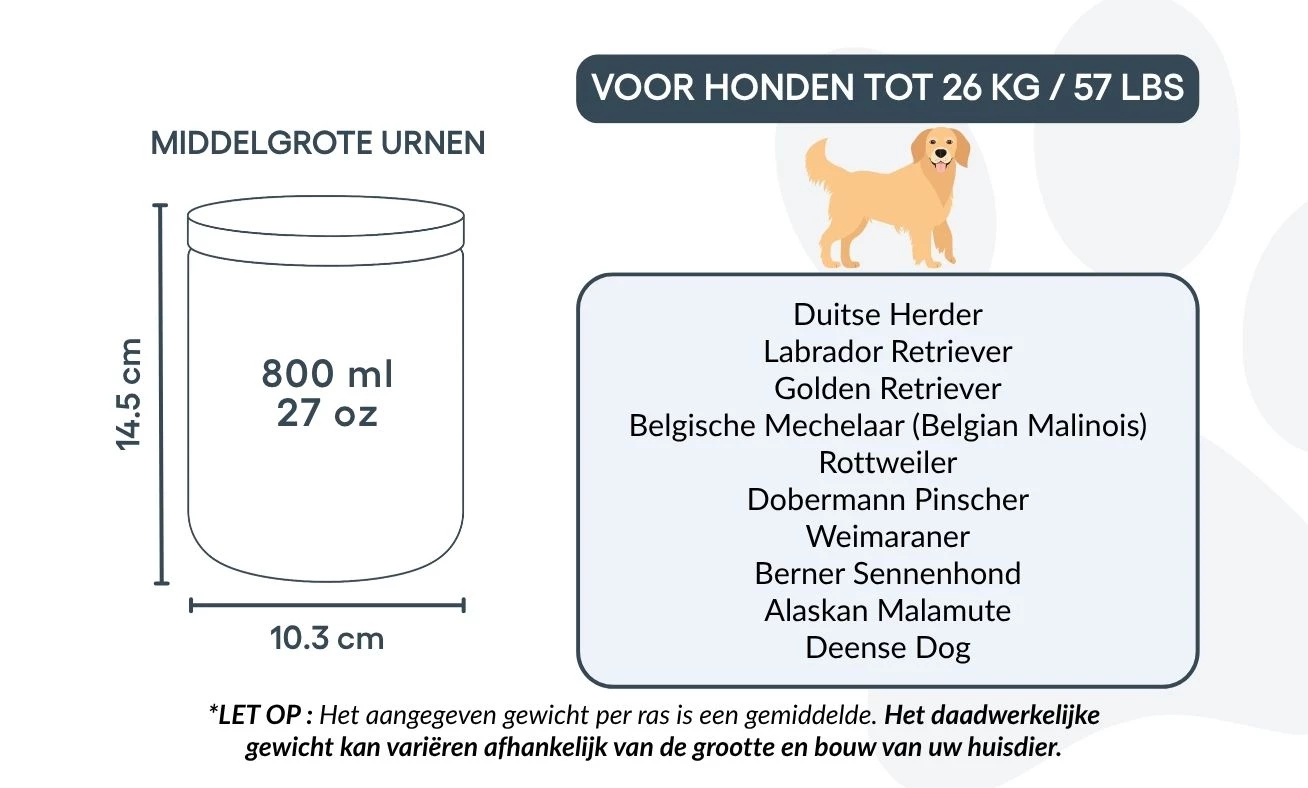 Perfect for pet cremation, this ceramic urn is available in two sizes to suit dogs up to 26kg. Whether displayed on a shelf or tucked into a private memory spot, this urn with photo is a respectful way to keep your companion close.