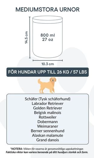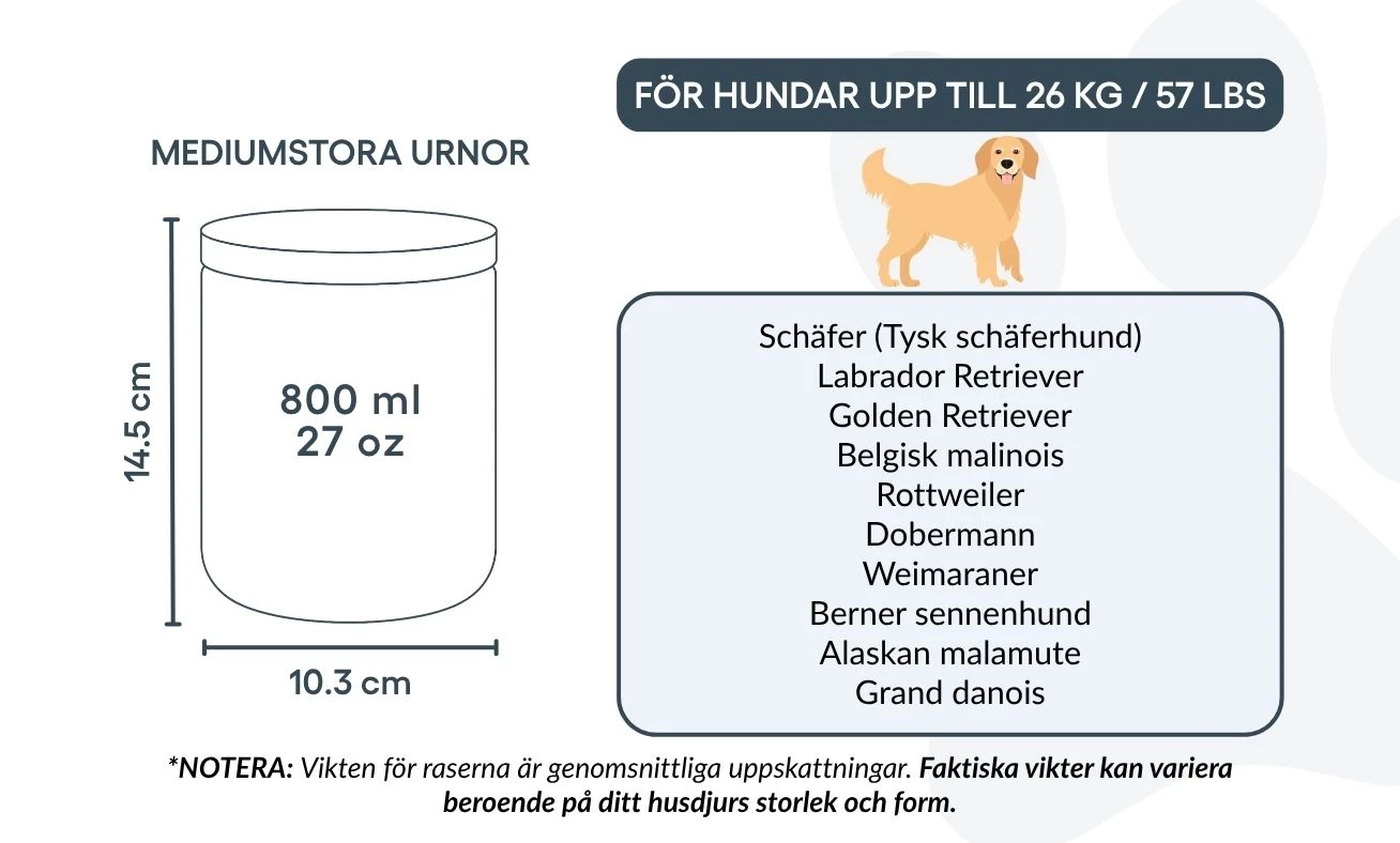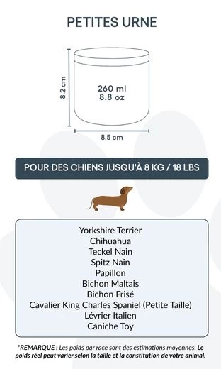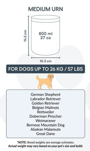 Available in two practical sizes to suit small and medium dogs, it offers a respectful and personal way to say goodbye. A thoughtful option for pet cremation, this urn is a lasting keepsake for any dog owner.