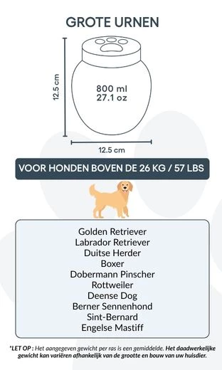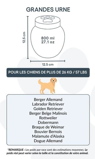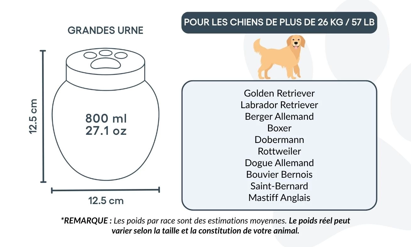 Saying goodbye to a beloved companion is never easy. Our custom dog urns are designed to bring peace and comfort, helping you remember your dog with dignity. Carefully personalised ceramic, each pet urn is available in three sizes to suit dogs of all breeds and weights.