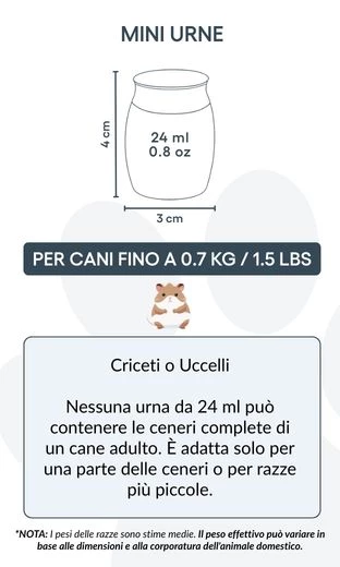 Available in silver, gold, and rose gold, the urn’s compact size makes it ideal for small pets such as hamsters or birds—or for keeping part of the ashes of larger dogs. It’s a versatile and tender way to celebrate a loyal companion’s life, keeping them close even after they’ve gone. For those who wish to preserve only a portion of their beloved dog’s ashes—whether for sharing with family, creating multiple keepsakes, or combining with other memorials—this urn can also be a meaningful choice for larger dogs. It allows you to keep a part of them close, in a way that feels right for you.
