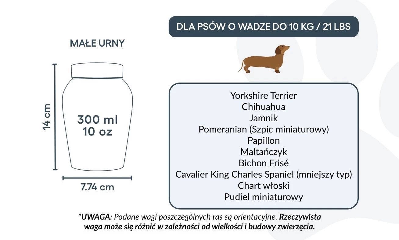 Small: 7.74 cm (W) x 14 cm (H) x 7.74 cm (L) | 300 ml / 10 oz – suitable for dogs up to 10 kg / 21 lbs