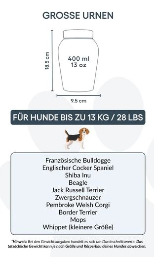 Create a lasting tribute to your beloved dog with this Personalised Stainless Steel Pet Urn with Full Pet Portrait, thoughtfully designed to hold their ashes with dignity and love. This elegant photo urn allows you to honour your pet’s memory by adding a full-body portrait, name, and life dates—transforming it into a deeply personal pet memorial.